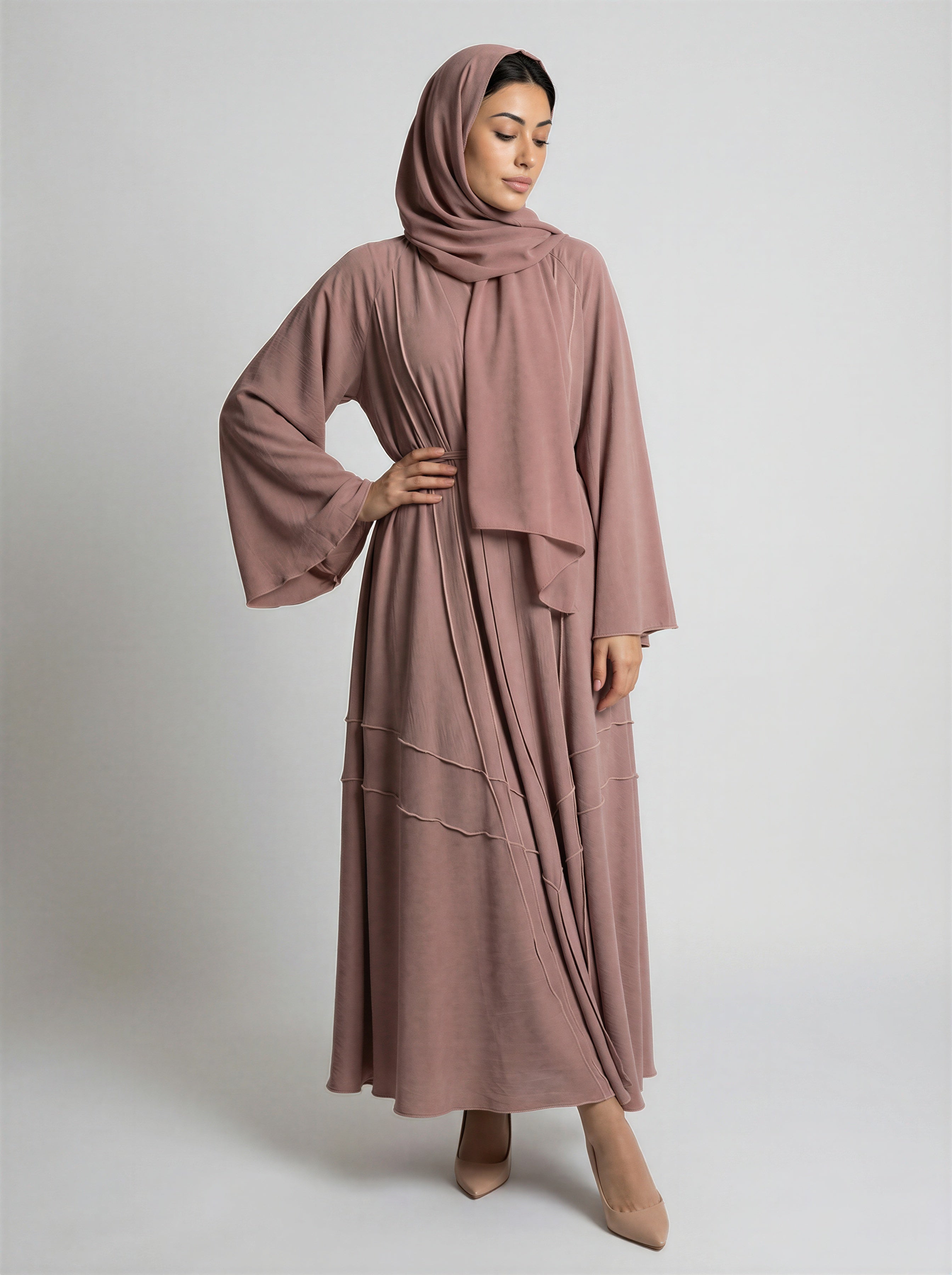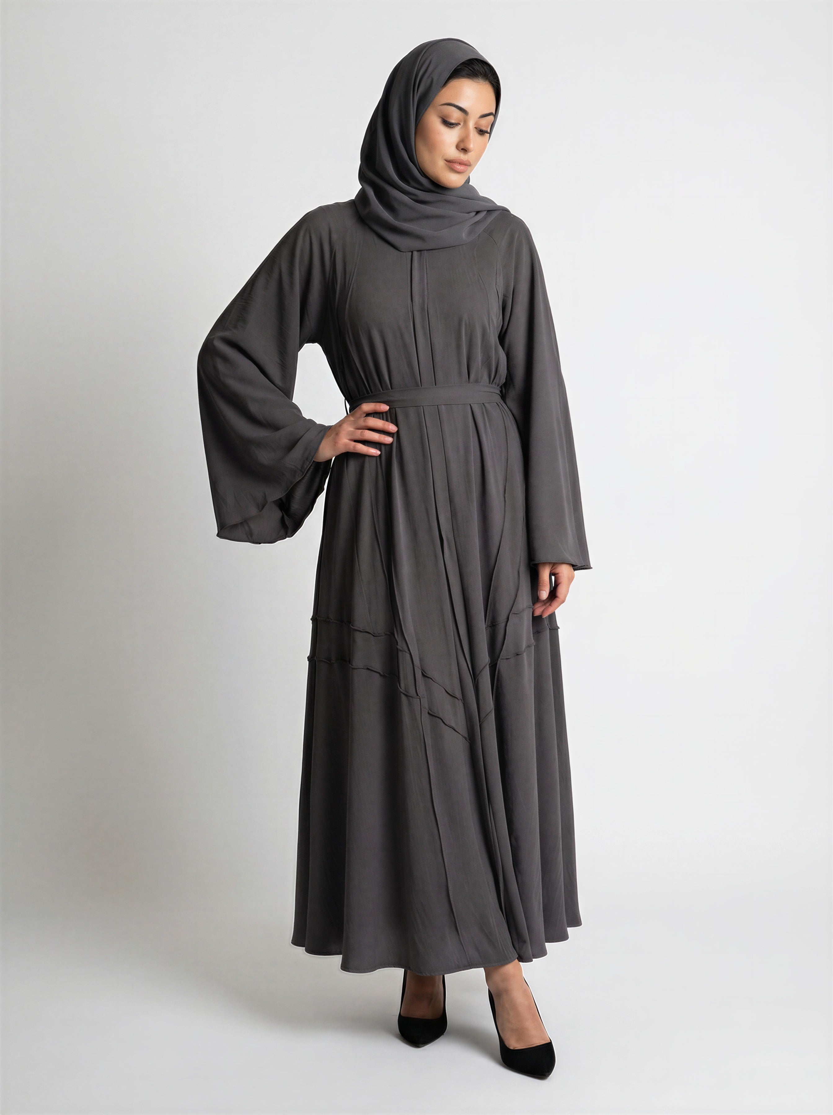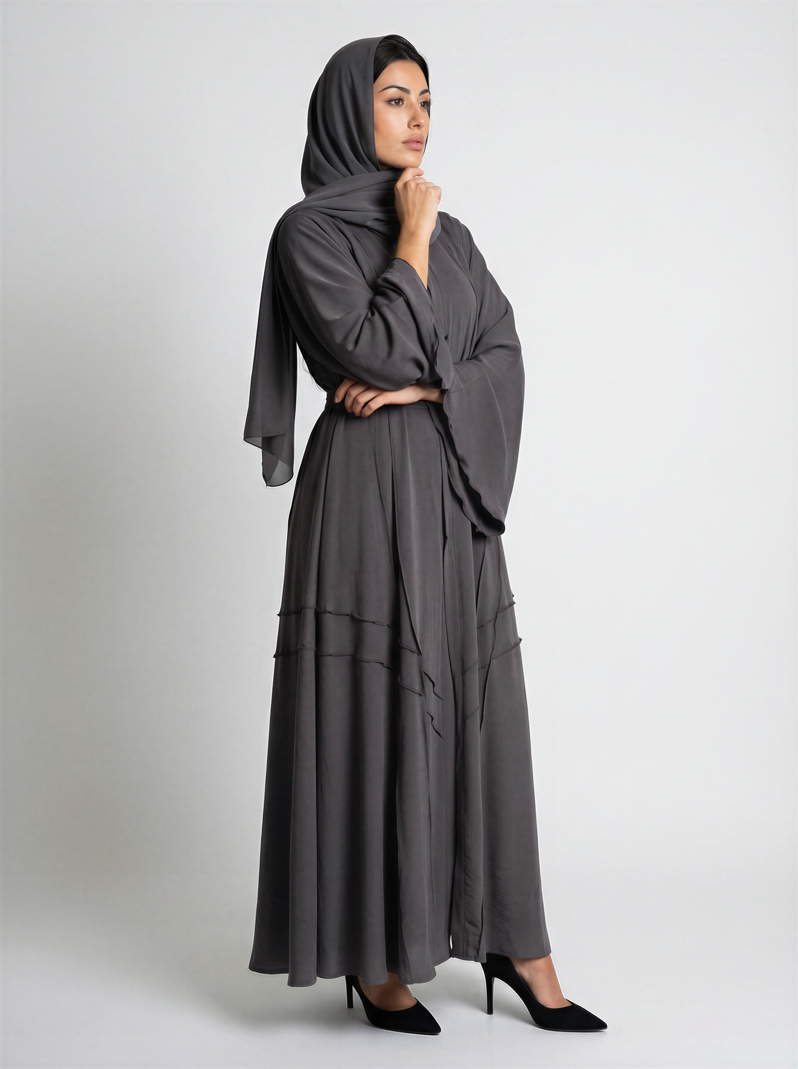 Tie-Waist Bell Sleeve Tiered Abaya